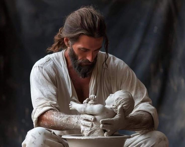 I believe He created Jesus the same way. He sat at a potter’s table and added water as he pedaled the potter’s wheel. Shaping and molding the little hands and feet that He knew would be pierced one day. I imagine He held Him close and kissed His tiny temples.